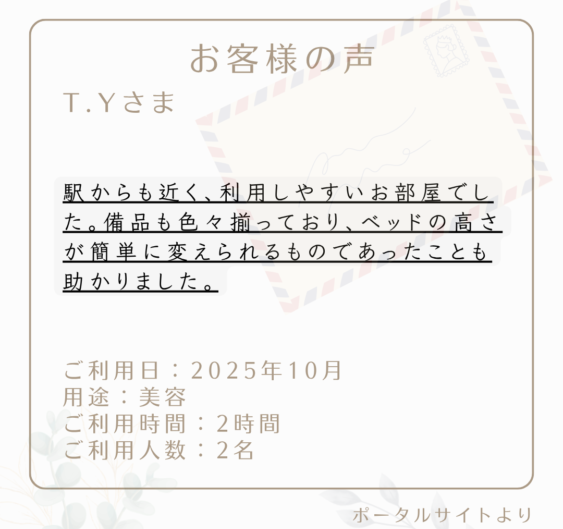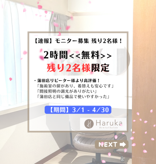 レンタルサロンHarukaの各店舗・設備についてご紹介いたします。