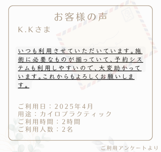 毎週決まった曜日・時間に施術される方にお薦めです。